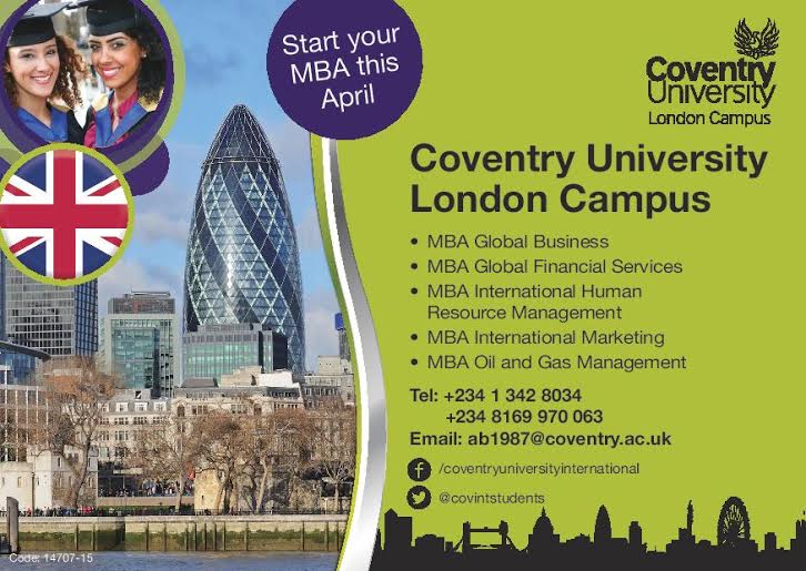 Ibadan Get Ready! Coventry University UK is Here with MBA Degree Options, Discounts & More for April 2015